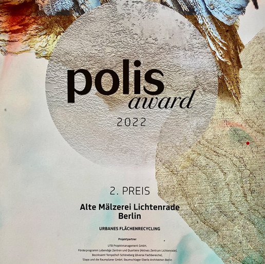 Eine Auszeichnung so ganz nach unserem Geschmack: Unsere Alte Mälzerei in Berlin-Lichtenrade gewinnt in der Kategorie „Urbanes Flächenrecycling“ den 2. Platz des polis award. 130 Projekte wurden aus dem gesamten Bundesgebiet für die 7 unterschiedlichen Kategorien eingereicht, 21 konnten einen Preis nach Hause tragen.