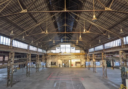 Ein gigantischer Raum für inspirierende Ideen: Die Belgienhalle und der zentrale Platz bilden das lebendige Zentrum des neuen Stadtteils „Das Neue Gartenfeld“. Sie sind der Ort der größten und intensivsten Aktivitäten im Quartier.