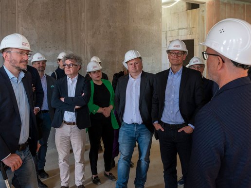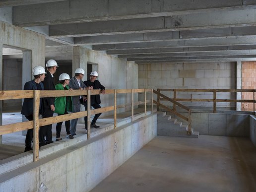 Auf der anschließenden Baustellenbegehung, u.a. mit der Besichtigung des Kiez-Schwimmbades, stand Herr Bestgen für Fragen zur Verfügung.