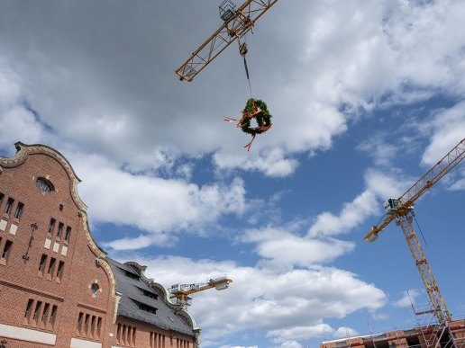 Mit der Fertigstellung des Rohbaus für 202 Mietwohnungen und einer integrierten gewerblichen, kulturellen und sozialen Infrastruktur, haben wir gemeinsam mit unseren Projektbeteiligten einen wichtigen Bauabschnitt hin zum gemeinwohlorientierten Standquartier erreicht. Ein guter Grund, um zu feiern und sich für die gute Zusammenarbeit und das unermüdliche Engagement aller Projekt- und Baubeteiligten zu bedanken.