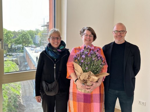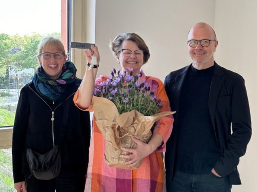 Zur Feier des Aktes überreichten Thomas Bestgen und Jutta Grünewald Frau Stengel neben ihrem Schlüssel einen ersten Lavendeltopf für ihre Loggia. Somit ist nun auch der Staffelstab offiziell von der UTB an die BeGrün weitergegeben worden, die die Verwaltung des neuen Stadtquartiers übernimmt. Die modernen und bezahlbaren Mietwohnungen werden nun Schritt für Schritt an die Mieter*Innen übergeben.