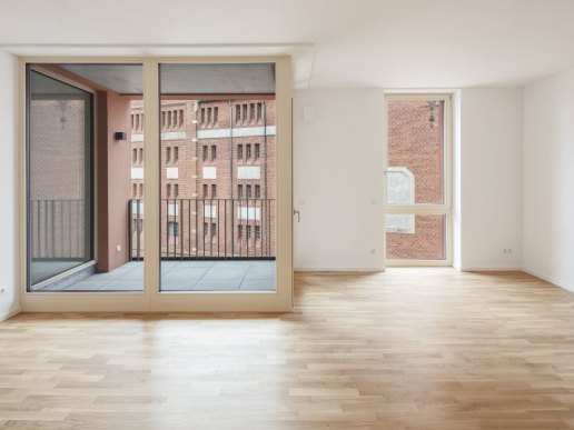 Aktuell sind bereits 47 der insgesamt 202 Mietwohnungen vermietet. 78 Wohnungen sind mietpreis- und belegungsgebunden mit einer Nettokaltmiete ab 6,70 Euro im Monat. Die Mieten der frei finanzierten Wohnungen betragen zwischen 7,92 Euro und 14,50 Euro. Die durchschnittliche Miete aller 202 Wohnungen beträgt somit unter 11,00 Euro. Alle Mietwohnungen überzeugen nicht nur durch ihre Nachhaltigkeit, sondern auch über den gleich hohen Standard, unabhängig von der Miethöhe. Ausgestattet mit komfortabler Fußbodenheizung, Handtuchheizkörpern, Loggien oder eigener Terrasse im Erdgeschoss – jede der Ein- bis Fünf-Zimmer-Wohnungen mit Flächen von 30 m² bis 115 m² bietet Platz für jeden Anspruch. Eine Besonderheit sind auch drei zwischen 220 m² und 430 m² große Cluster-Wohnungen, ein Zusammenschluss mehrerer Einzel-Apartments für betreute Wohngemeinschaften sozialer Träger. Zwei Drittel aller Wohnungen sind barrierefrei.